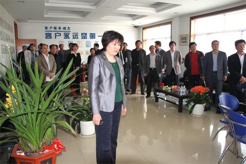 公司董事長兼總經理王兆連陪同各位領導在公司接待室對我公司近年發展、重大工程項目、發展規劃特色產業基地創建等一并作了詳細匯報。張局長對我公司近年來技術創新取得的成就給予肯定,并對我公司名牌創建、自主創新等工作進行了指導。隨后參觀公司研發中心和公司展廳。