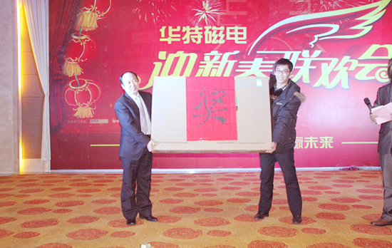 晚會(huì)中還穿插了抽獎(jiǎng)活動(dòng)。獎(jiǎng)項(xiàng)設(shè)立了特等獎(jiǎng)、一、二、三等獎(jiǎng)及幸運(yùn)獎(jiǎng),分別由公司董事長(zhǎng)兼總經(jīng)理王兆連本人贊助的4499元50寸海信彩電一臺(tái);一、二等獎(jiǎng)分別由公司贊助1399元金立手機(jī)、688元的三星手機(jī)7部;三等獎(jiǎng)由公司各中心、部門(mén)贊助12臺(tái)價(jià)值500元的美的電壓力鍋,并從現(xiàn)場(chǎng)抽取23名幸運(yùn)員工,為他們贈(zèng)送了精美禮品。