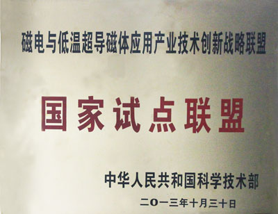 近日,公司收到由國家科技部頒發的“磁電與低溫超導磁體應用產業技術創新戰略聯盟”匾牌。這是對公司擔任聯盟理事長單位工作的支持和肯定。
