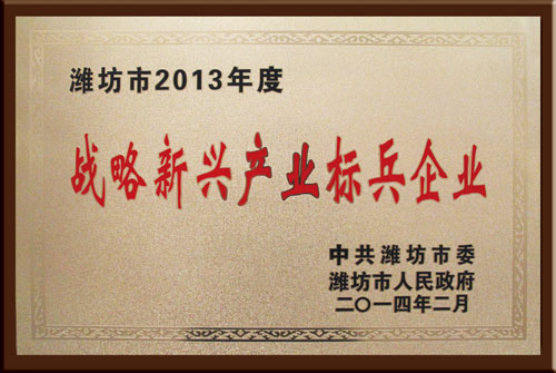 公司被濰坊市委市政府授予“戰略新興產業標兵企業”
