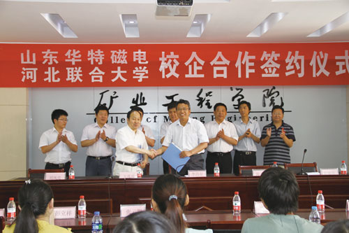 6月24日,公司董事長兼總裁、磁電聯(lián)盟理事長王兆連,磁電聯(lián)盟秘書長、公司常務(wù)副總兼技術(shù)中心總經(jīng)理劉風(fēng)亮等一行,赴河北唐山與河北聯(lián)合大學(xué)舉行戰(zhàn)略合作框架簽約儀式。雙方進(jìn)行了熱情友好的交流,就學(xué)校加入磁電與低溫超導(dǎo)磁體應(yīng)用產(chǎn)業(yè)技術(shù)創(chuàng)新戰(zhàn)略聯(lián)盟以及雙方全面合作達(dá)成一致。