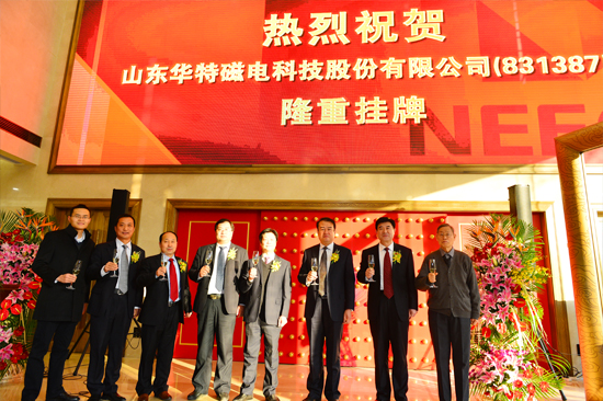 12月8日上午,山東華特磁電科技股份有限公司“新三板”掛牌儀式在全國中小企業(yè)股份轉讓有限責任公司隆重舉行。濰坊市金融工作辦公室副主任張新華、臨朐縣委常委、常務副縣長衣利民、臨朐縣金融工作辦公室主任高凌利、臨朐縣城關街道黨工委書記沈明新、臨朐縣東城街道黨工委書記孫傳坤、山東華特磁電科技股份有限公司董事長王兆連及公司股東和高管、臨朐縣相關企業(yè)負責人出席本次掛牌儀式。
