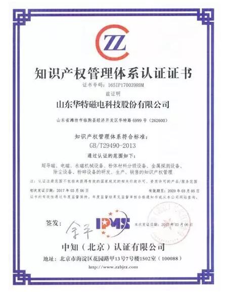 山東華特磁電順利通過知識產權管理體系認證